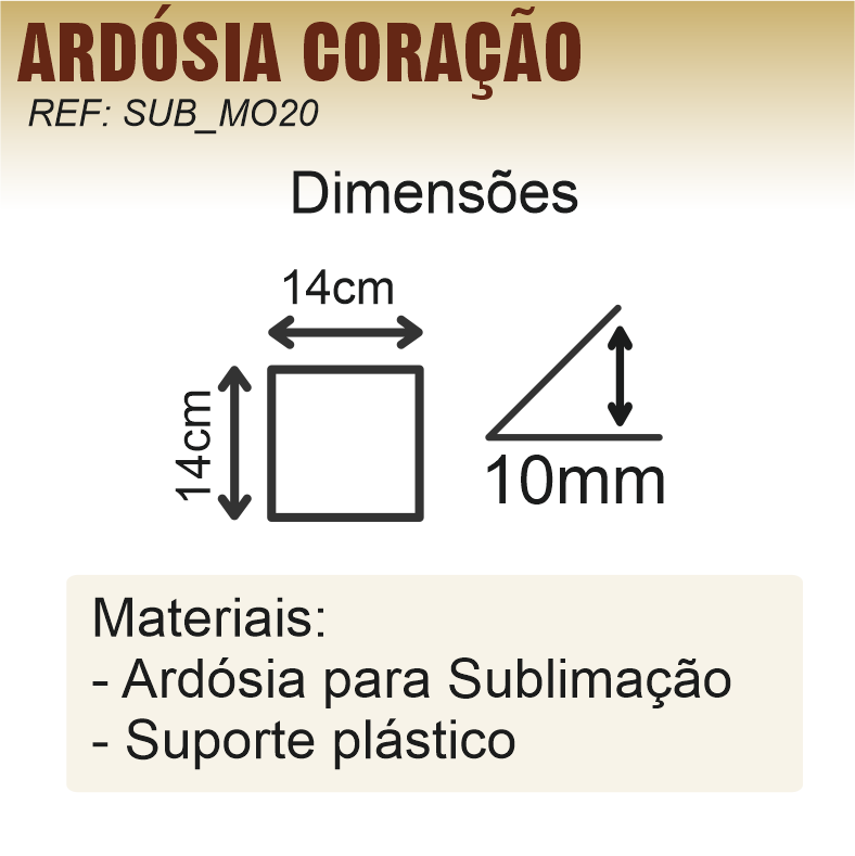 Ardósia Formato Coração Especial para sublimação acabamento Brilho