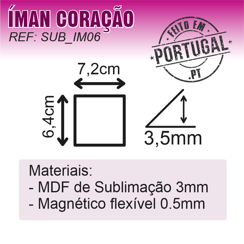 Magnético de frigorifico (Coração) para sublimar, inclui tela magnética para contra colar