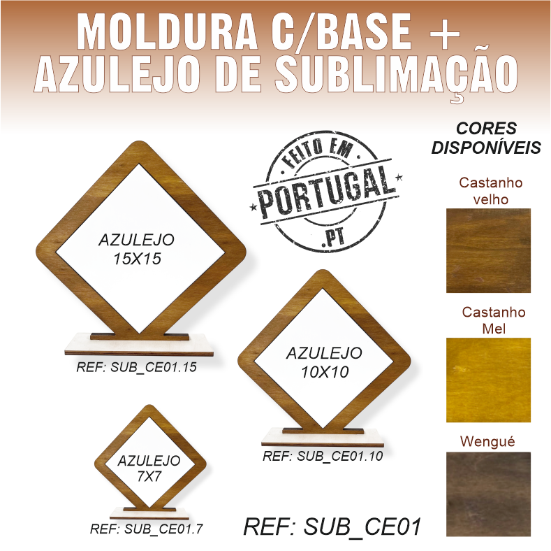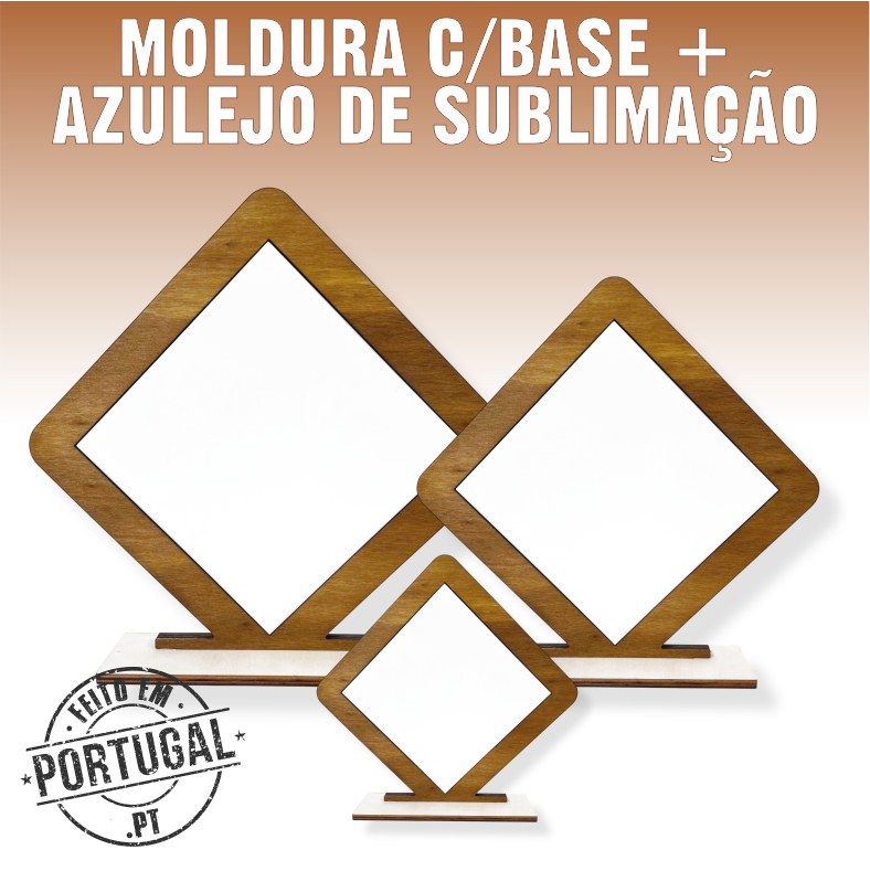Moldura/Troféu + azulejo : Moldura em contraplacado 6mm com tratamento à cor, com base de suporte e azulejo para sublimar