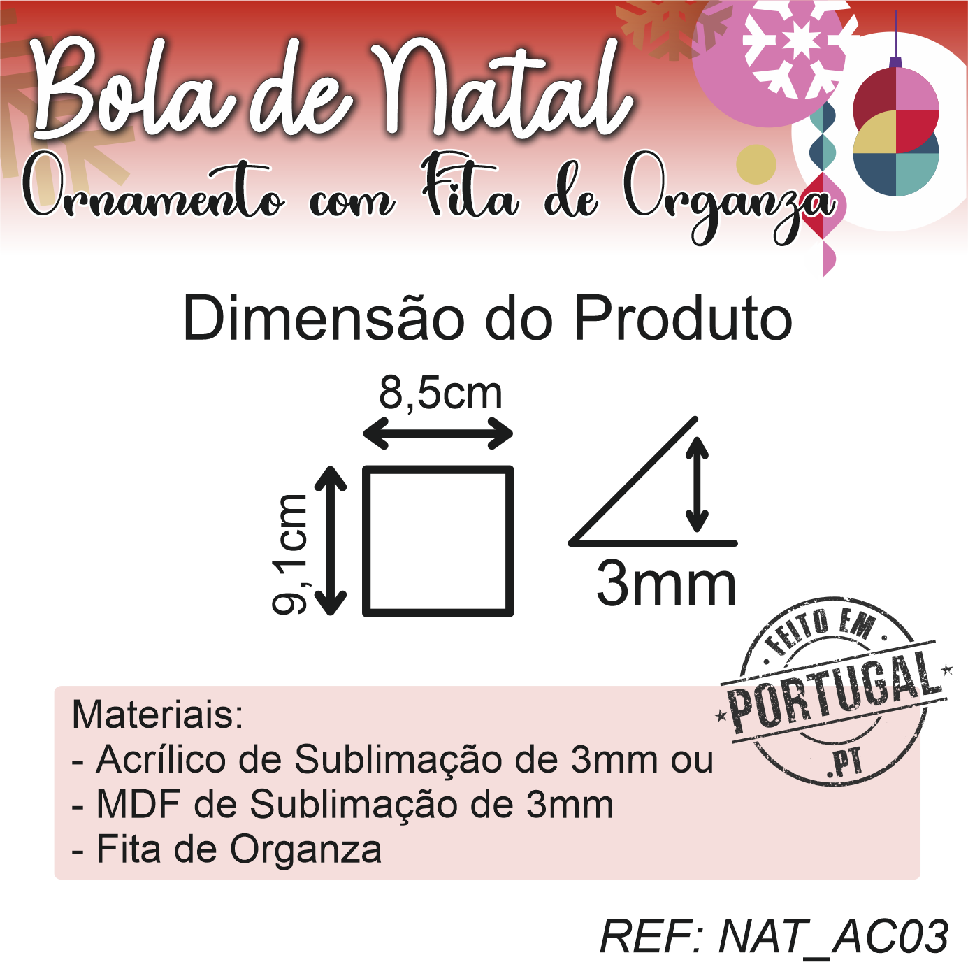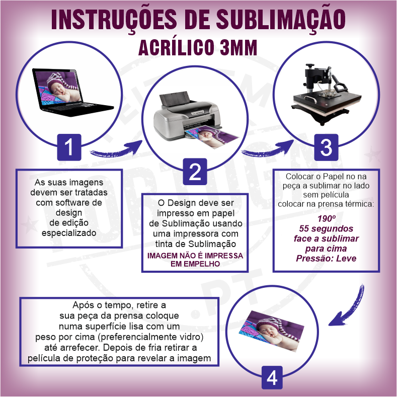 Técnica de impressão: Sublimação - Substrato: Acrílico/ MDF de 3 mm