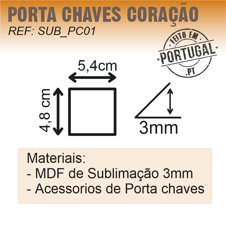 Técnica de impressão: 1 face Sublimação - Substrato: MDF 3mm, argola em metal e ilhós de fixação