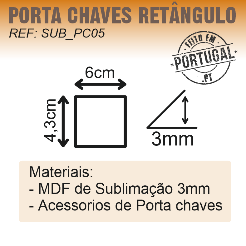 de impressão: 1 face Sublimação - Substrato: MDF 3mm, argola em metal e